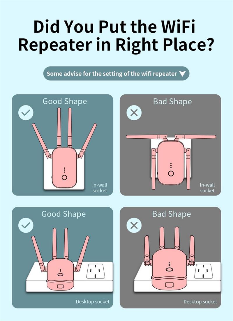 2. Wide Compatibility:It is compatible with various wireless standards (802.11ac/a/b/g/n), ensuring seamless integration with most routers and devices, offering extended coverage to areas with weak signals.
