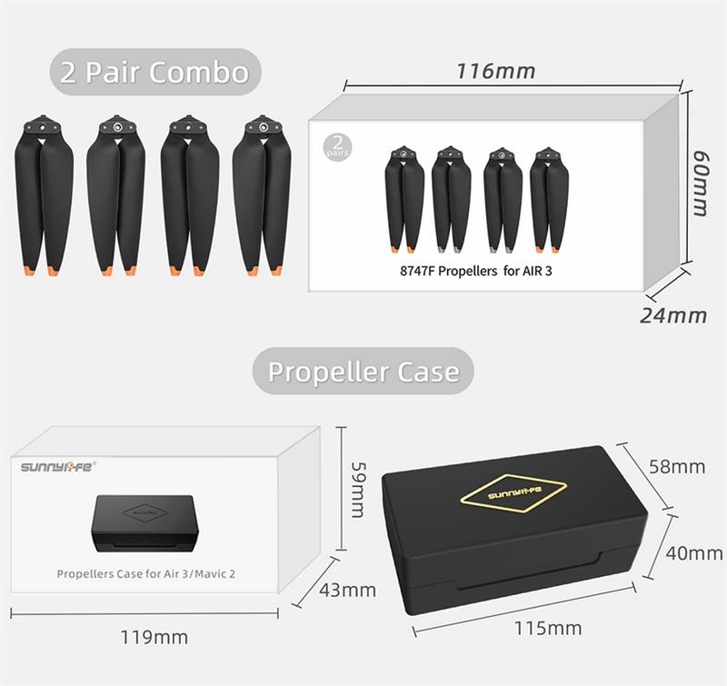 Sunnylife 8747F Low-Noise Foldable Propeller Props Blade Set with Storage Box for DJI AIR 3 RC Drone Quadcopter