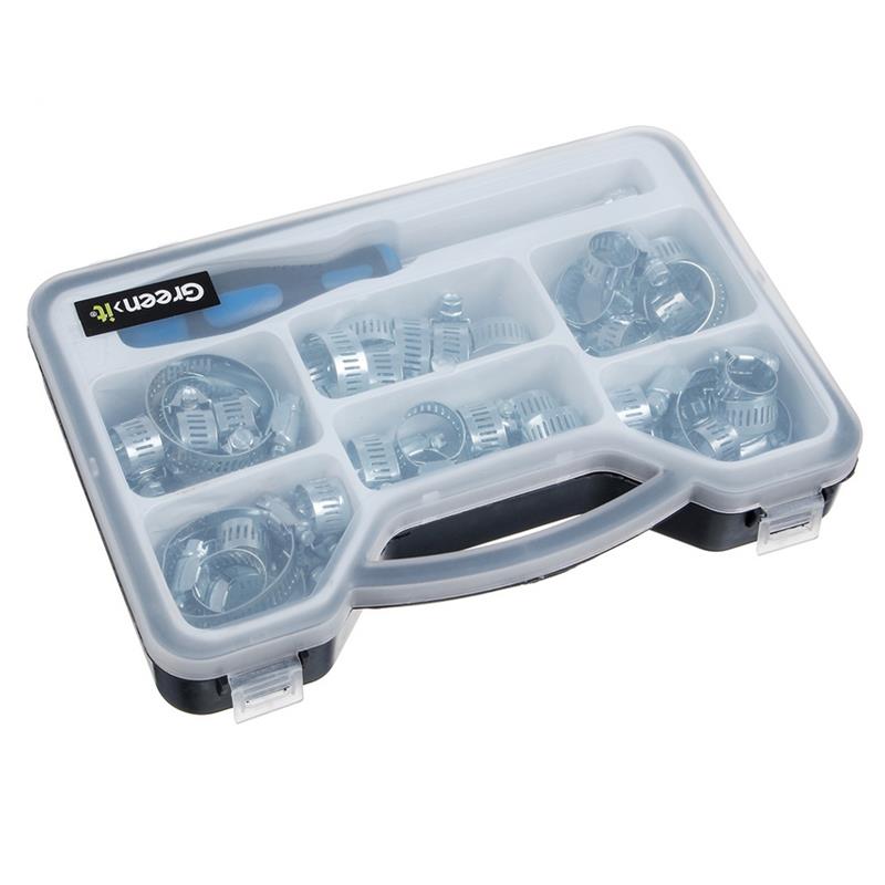 40pcs Set Stainless Steel Hose Pipe Clips Clamps Adjustable Screw Band Oil Pipe Fastener Spring Clips