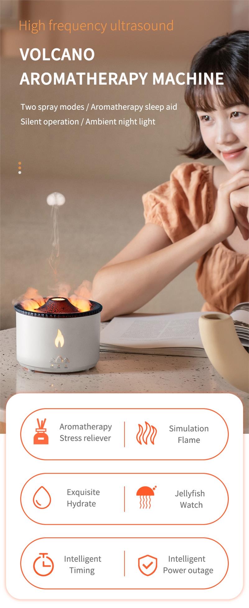 360ml Volcanic Flame Aroma Oil Diffuser Jellyfish Smoke Ring Air Humidifier Ultrasonic Atomizing Sprayer As Christmas GiftStandard