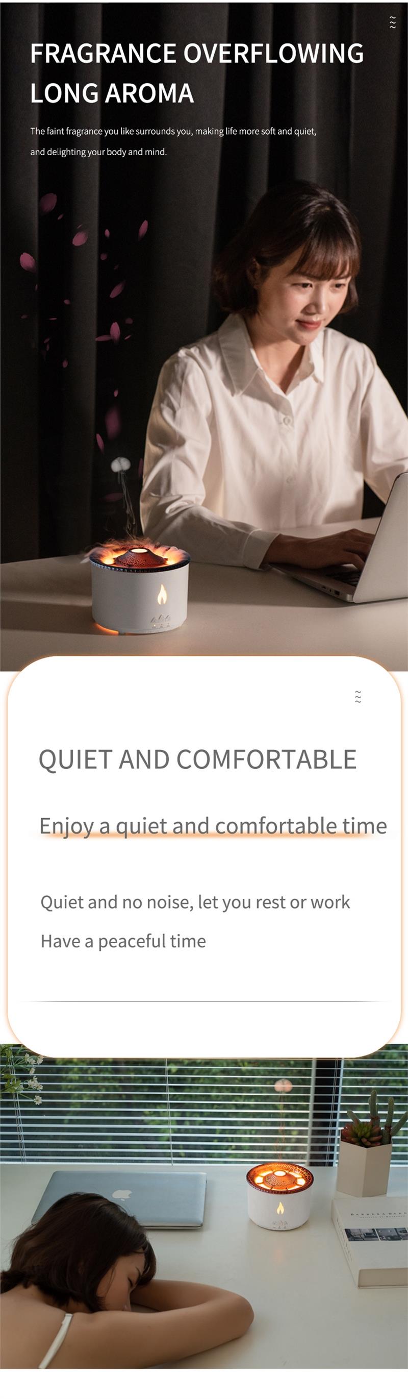 With the water tank, the cool mist humidifier can provide you with comfortable misting air in atomization modes, flameand volcano.The flame mode burns in the air like fog, and the volcano mode emits fog like a volcanic eruption٫you enjoying pleasant scent in your large room and office
