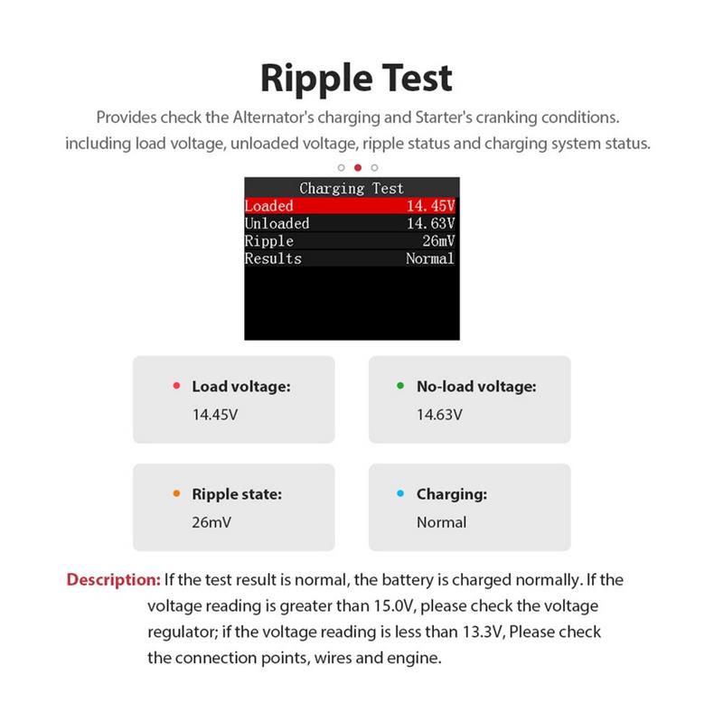 1. Accurate Testing:Provides precise measurements of battery voltage and health, helping you identify potential issues.