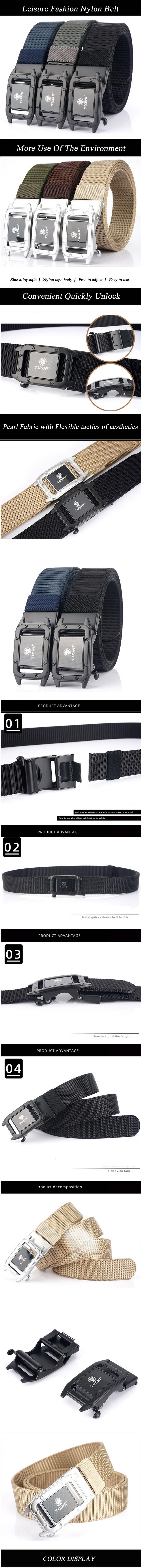 TUSHI Punch Free Automatic Buckle Breathable Nylon Waist Belts Tactical Belt Leisure Metal Press Buckle Belt Men’s Waistband