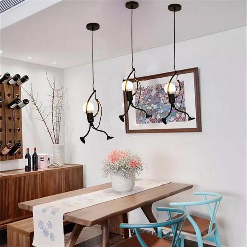 E27 Bulb 220V Modern Creative Hanging Pendant Lights Iron People Lamp Elegant Hanger Luminaire Adjustable Height