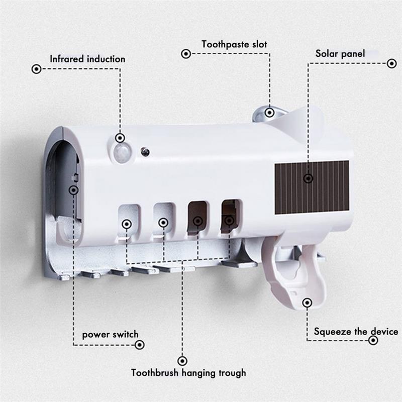 UV Light Toothbrush Holder Sterilizer Cleaner Automatic Toothpaste Dispenser