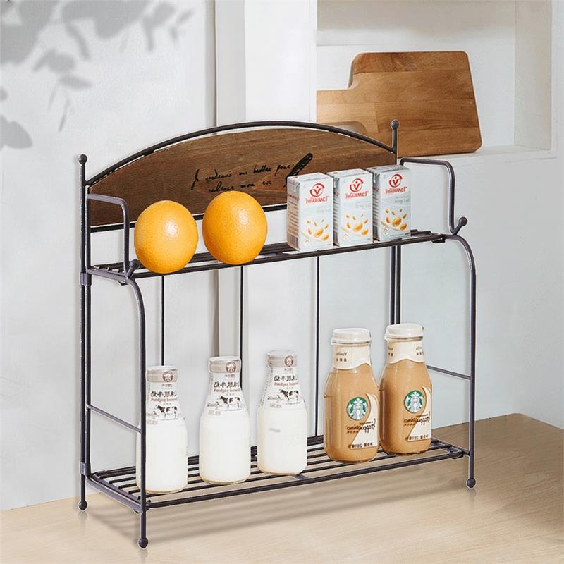 Brown / White 2-layers Metal Iron Storage Rack Decorative Storage Shelf