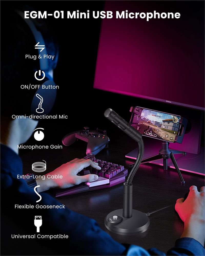 Flexible gooseneck design allows you to adjust the perfect angle, pick up sound from 360 degrees with high sensitivity. Upgraded version Microphone EGM01 Take advantage of more possibilities