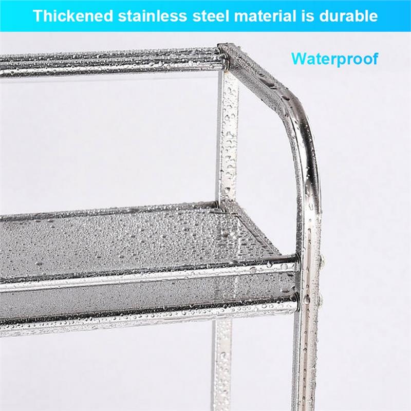 2/3 Tier Rack Stainless Steel Kitchen Storage Shelf Silver Pantry Cookware Spice Shelf Bottle Stand with Hanging Hooks