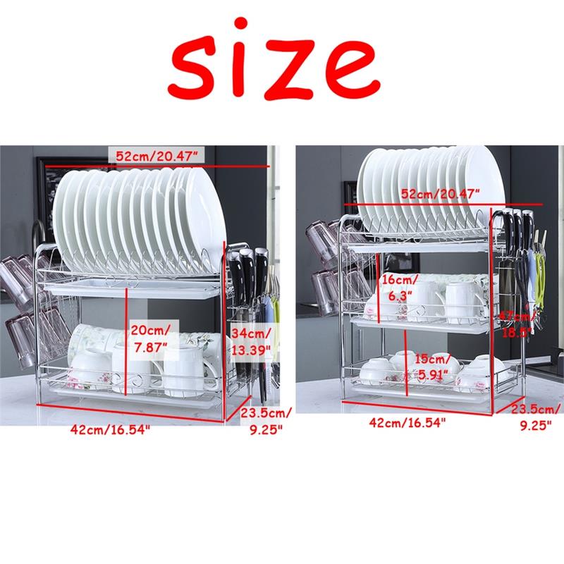 2/3 Tiers Dish Drainer Holder Metal Drying Rack Basket Bowl Dish Draining Shelf Dryer Tray Holder Kitchen Sink Organizer Home