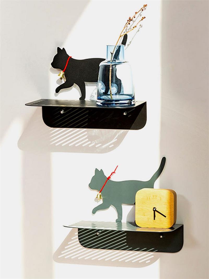 Cute Cat Pattern Iron Hanging Storage Racks Kitchen Bathroom Wall Mounted Mobile Phone Holder Shelves