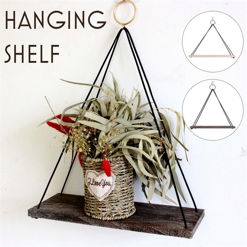 Hanging Shelf Storage Holder Plant Rack Wooden Bedroom Wall Mounted Organizer