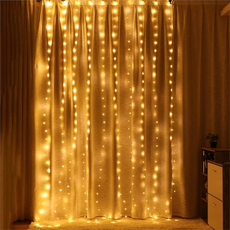 3M*3M Hanging 300LED Curtain Fairy String Light 8 Modes Outdoor Wedding Party Wall Decor Lamp DC5V