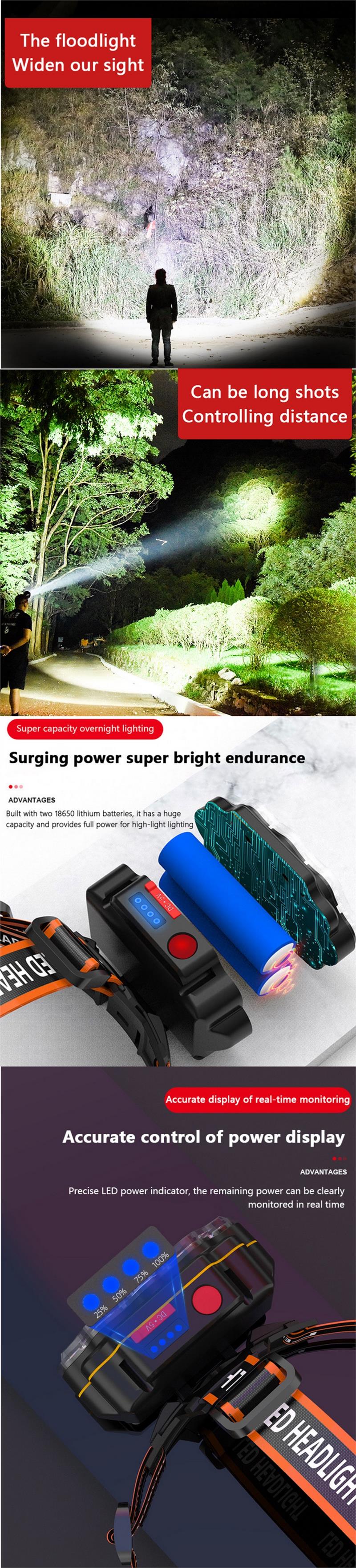 Bikight 4-Modes 8*XPG LED Headlamp USB Rechargeable Long Shoot Camping Head Light 18650 Fishing Lantern Waterproof Head Torch Flashlight