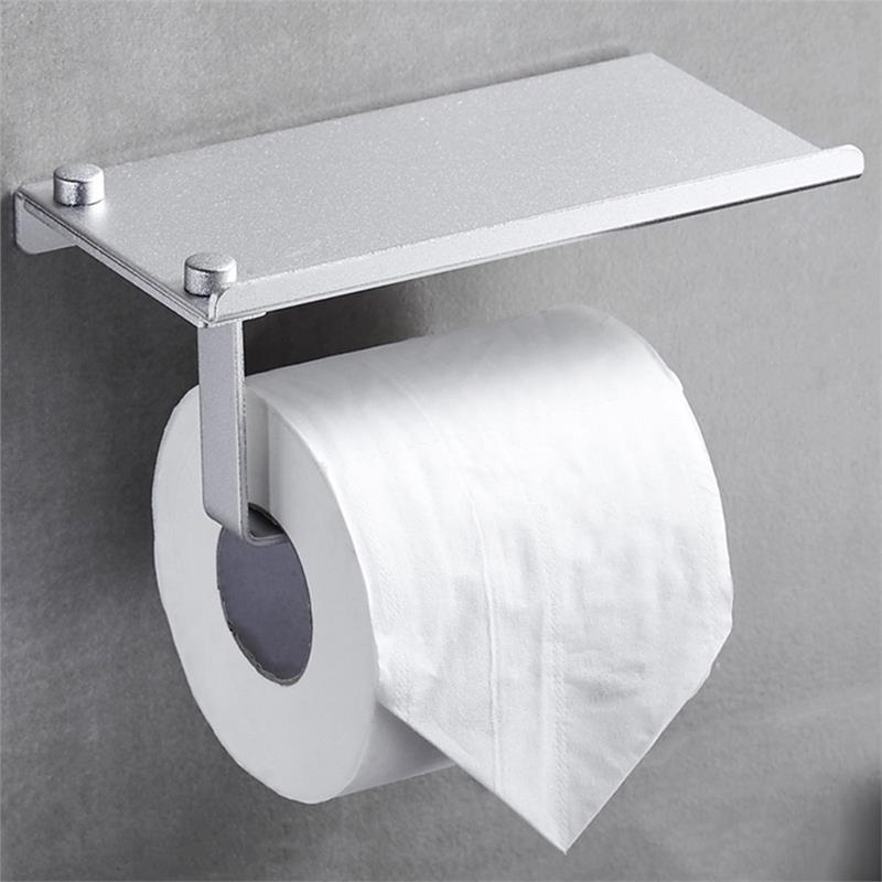 Aluminum Toilet Paper Punch Free Holder With Phone Shelf Wall Mounted Bathroom Accessories Tissues Roll Dispenser Matte