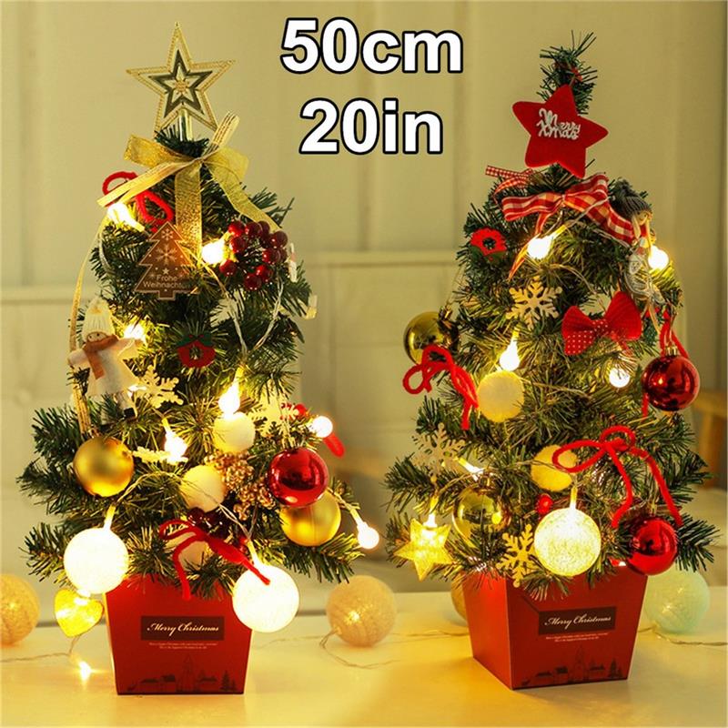 Mini Christmas Tree Desktop With Lights 50CM Golden And Red Christmas Tree Set