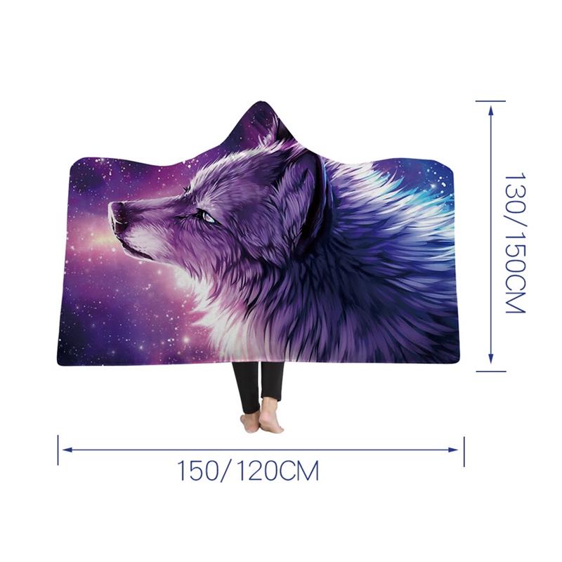 Soft Hooded Blanket Throw Winter Home Sofa Warm Plush Cloak 3D Printing Blankets Home Bedding