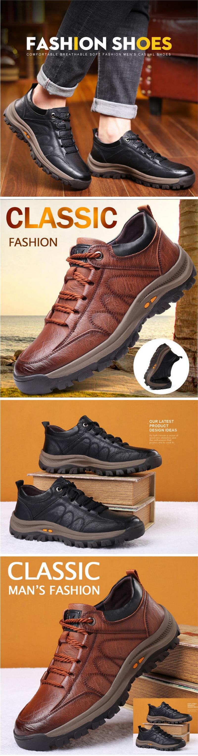 TENGOO Men’s Casual Leather Shoes Classic Outdoor Sports Hiking Shoes Trekking Men’s Footwear