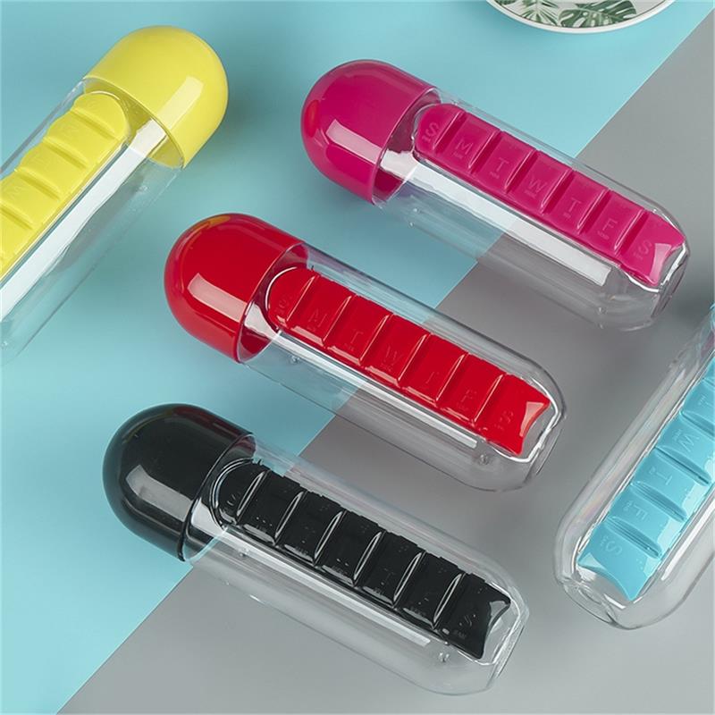 2 in 1 600ml Pill Box Cup Portable Large Capacity 7 Pill Box Outdoor Carrying Water Bottle With Pill Box Capsule Cup