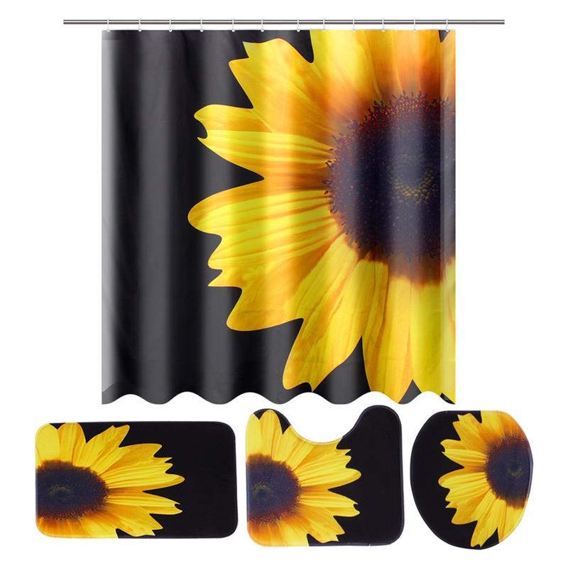 Shower Curtain Bathroom Mats Rugs Set Non-Slip Quickly Dry Soft Bath