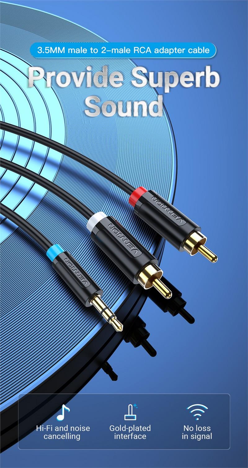 Vention RCA Cable 3.5mm Jack to 2RCA Audio HiFi Stereo Cable for Smartphone Amplifier Subwoofer Home Theater DVD VCD AUX Cable