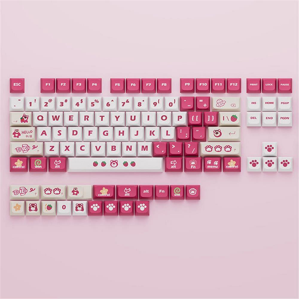 122 Keys Strawberry Bear Theme PBT Keycap Set XDA Profile Sublimation Lotso Keycaps for Mechanical Keyboards